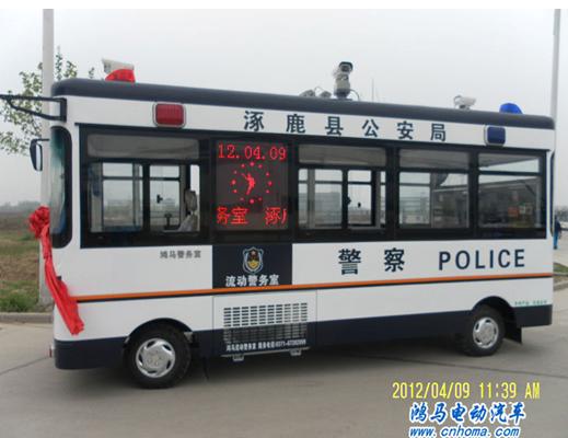 2012年4月9日上午,在河南森源鴻馬電動(dòng)汽車公司長(zhǎng)葛生產(chǎn)基地舉行張家口涿鹿縣警用便民移動(dòng)警務(wù)室發(fā)車儀式。