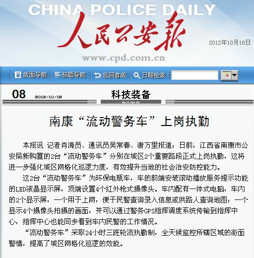 人民公安報報道:南康鴻馬“流動警務(wù)車”上崗執(zhí)勤