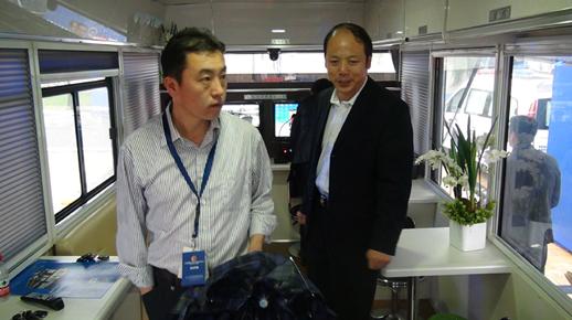 公安部警用裝備采購中心王強(qiáng)主任體驗(yàn)流動(dòng)警務(wù)室功能