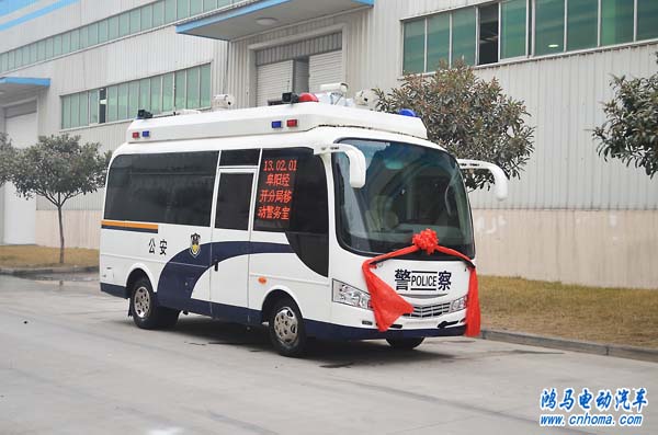 2月1日上午,在河南森源鴻馬電動(dòng)汽車公司舉行安徽省阜陽(yáng)市鴻馬燃油流動(dòng)警務(wù)室發(fā)車儀式。
