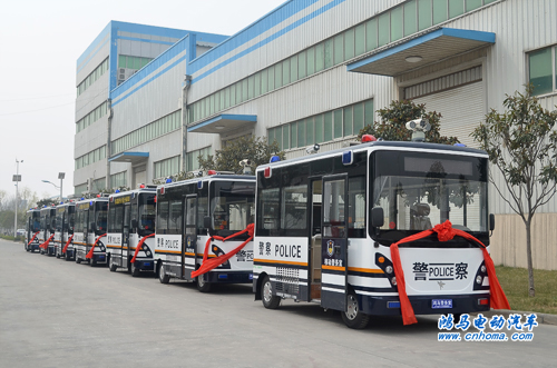 3月19日下午,在河南森源鴻馬電動汽車公司舉行山東聊城東昌府公安分局8臺流動警務室發(fā)車儀式。