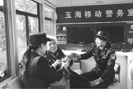 圖為該所女民警在移動(dòng)警務(wù)室內(nèi)接待求助群眾