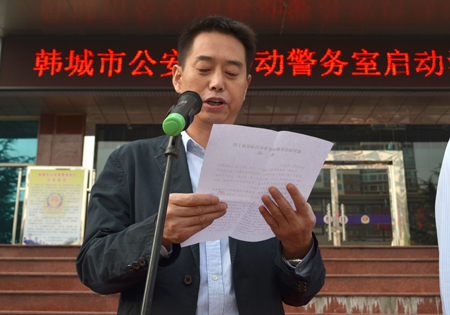 在移動(dòng)警務(wù)室啟動(dòng)儀式上,韓城市公安局長(zhǎng)沈軍做動(dòng)員講話,他說(shuō):“工欲善其事 必先利其器”此次購(gòu)置的20臺(tái)鴻馬移動(dòng)警務(wù)室是韓城市公安局順應(yīng)民意、體察民情的“民生工程”,是創(chuàng)建“平安韓城”的重要載體,此次韓城市公安局將以移動(dòng)警務(wù)室為載體,開(kāi)展群防群治、便民利民活動(dòng),努力實(shí)現(xiàn)“建設(shè)兩個(gè)環(huán)境 服務(wù)經(jīng)濟(jì)發(fā)展 推進(jìn)警務(wù)前移 全力降低發(fā)案”的工作目標(biāo),為建設(shè)平安韓城做出更大的貢獻(xiàn)。