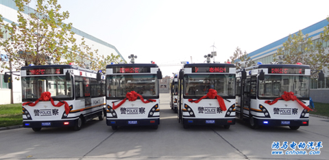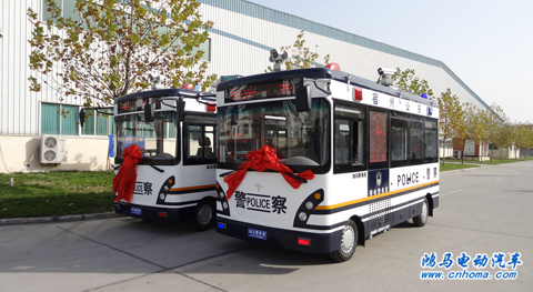 11月16日下午,在河南森源鴻馬電動(dòng)汽車有限公司舉行安徽宿州11臺(tái)鴻馬移動(dòng)警務(wù)室發(fā)車儀式。