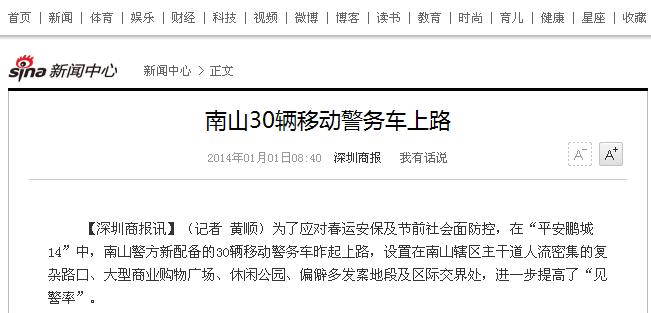 【深圳商報(bào)訊】(記者 黃順)為了應(yīng)對(duì)春運(yùn)安保及節(jié)前社會(huì)面防控,在“平安鵬城14”中,南山警方新配備的30輛鴻馬電動(dòng)移動(dòng)警務(wù)車昨起上路,設(shè)置在南山轄區(qū)主干道人流密集的復(fù)雜路口、大型商業(yè)購物廣場(chǎng)、休閑公園、偏僻多發(fā)案地段及區(qū)際交界處,進(jìn)一步提高了“見警率”。