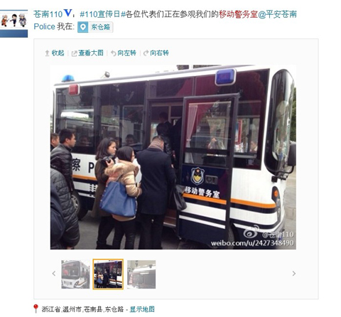各代表參觀浙江溫州蒼南縣移動(dòng)警務(wù)室