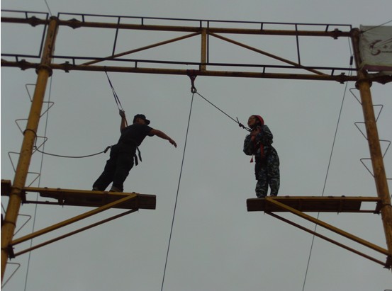 第三項信任背摔: 當我們每個隊員站在約1.5米的高臺上時心情都十分忐忑不安,由于我們是在拿本人生命做賭注,假如摔倒或者有其他的什么不測,就會受傷、甚至更嚴重的事發(fā)生,所以就必須表現(xiàn)出團隊的協(xié)作才能讓不好的事情發(fā)生,我們每個人都墮入了深深的考慮,那就是:什么樣的團隊才能夠取勝?協(xié)作、高效、信任……這些平常說了無數(shù)遍的道理在每個人的腦海里都留下了不可磨滅的印象。