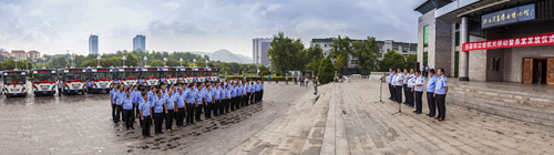 山西呂梁 12臺新型移動警務(wù)室交車啟動儀式