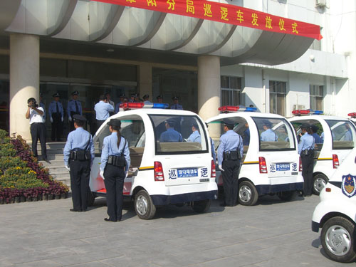 河南鴻馬電動(dòng)車(chē)以自己過(guò)硬的專(zhuān)業(yè)技能,一次又一次的在眾多招標(biāo)中擊敗競(jìng)爭(zhēng)對(duì)手取得勝利,也使越來(lái)越多的公安用上了鴻馬電動(dòng)汽車(chē)公司為他們精品設(shè)計(jì)的電動(dòng)警用系列車(chē)輛,今天,是河南商丘淮陽(yáng)公安局的“大喜”日子,一輛輛嶄新的河南鴻馬牌電動(dòng)汽車(chē)開(kāi)入了分局,有了這些操作簡(jiǎn)便、節(jié)能環(huán)保的電動(dòng)車(chē)輛,使得以后他們?cè)跒槊穹⻊?wù)更為的如虎添翼……