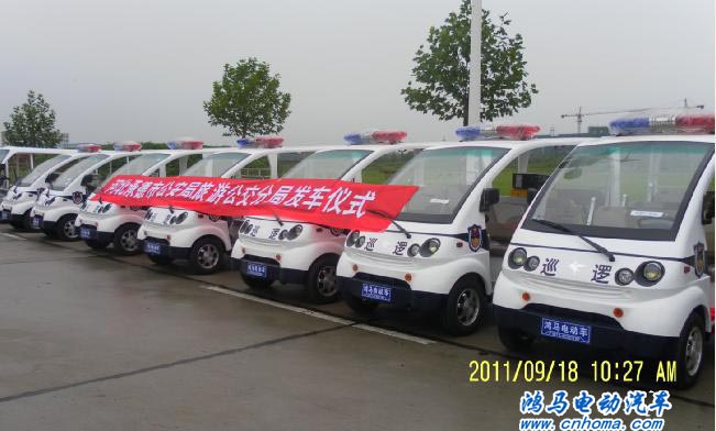 鴻馬電動巡邏車采用了最新的電力驅(qū)動,每個車輛可乘坐六人,續(xù)航里程達80-100公里,車頂裝有高爆警用閃燈,車內(nèi)裝有對外喊話器,可大面積的維護社會治安的穩(wěn)定。為即將到來的“十一”國慶長假打造一個平安,和諧的承德旅游環(huán)境。