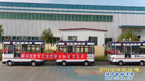 10月14日,四川自貢流動警務(wù)室發(fā)車儀式在鴻馬電動車生產(chǎn)基地舉行,3臺4.2米的流動警務(wù)準(zhǔn)備發(fā)往自貢市匯東交警大隊。這是自貢高新公安分局采購鴻馬流動警務(wù)室試點成功,受到自貢人民的稱贊后,再次采購鴻馬流動警務(wù)室配備到四川自貢匯東交警大隊
