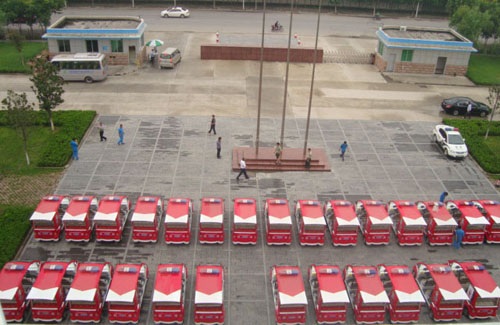 電動巡消車在森源鴻馬電動車公司整裝待發(fā)
