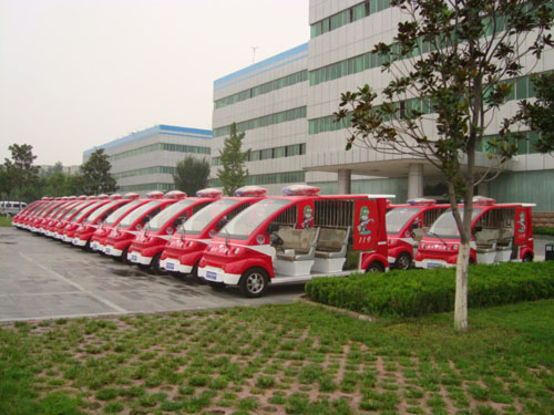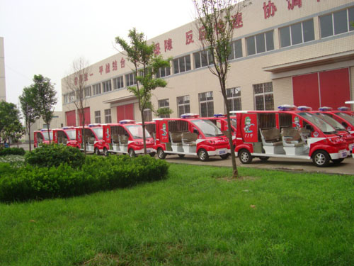 2010年8月23日,30臺純電動巡消車整整齊齊的一路平穩(wěn)的駛?cè)牒幽鲜∴嵵菔薪鹚畢^(qū),這30臺嶄新的純電動巡消車輛是金水區(qū)專門用于平時巡邏、消防而采購的,這種小巧的純電動巡邏車是“麻雀雖小,五臟俱全”,每臺車輛上都配備了消防必需品,有滅火器,消防水袋,消防用的錘子等工具。