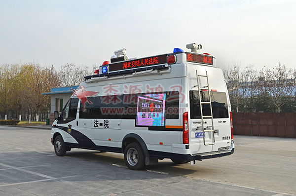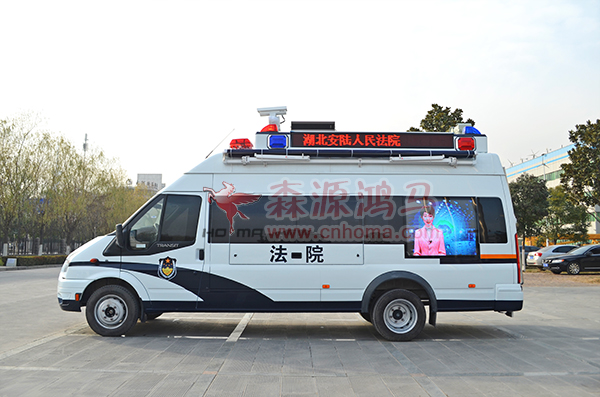 鴻馬移動(dòng)法庭集訴訟服務(wù)、巡回審判、法制宣傳、執(zhí)行指揮四大功能于一體,具有機(jī)動(dòng)靈活、功能集成等特點(diǎn),車內(nèi)設(shè)置有審判桌椅、電子公告牌、大型室外LED屏、審判法庭信息化系統(tǒng)等一系列設(shè)備,為保障全天候運(yùn)行、特殊情況下執(zhí)法,還專門裝配了高功率照明攝像頭系統(tǒng)、擴(kuò)音設(shè)備等器材,是一個(gè)智能化、小型化、移動(dòng)式的“科技法庭”。